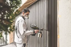 Electric paint spray gun for use with all standard water or solvent-based paints and varnishes. Full coverage guaranteed with horizontal, vertical and circular spray orientation.