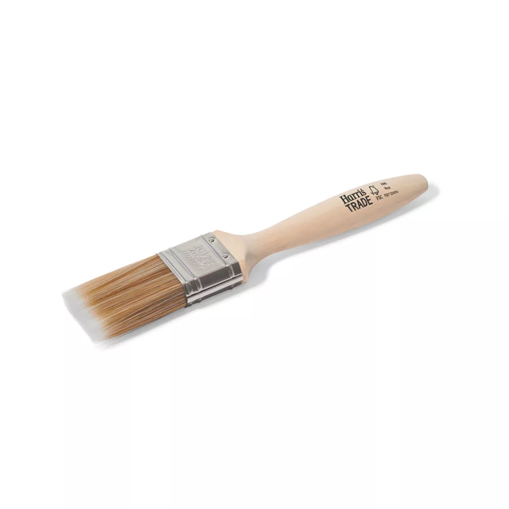 High specification, fine-tipped synthetic filaments deliver a smooth, even finish with minimal brush marks. Perfect for completing an indoor painting project, skirtings, walls or ceilings and can be used with all paints and varnishes. Solid tapered filaments provide excellent control when tackling precision areas. Comfortable wooden, unvarnished handle for prolonged use.