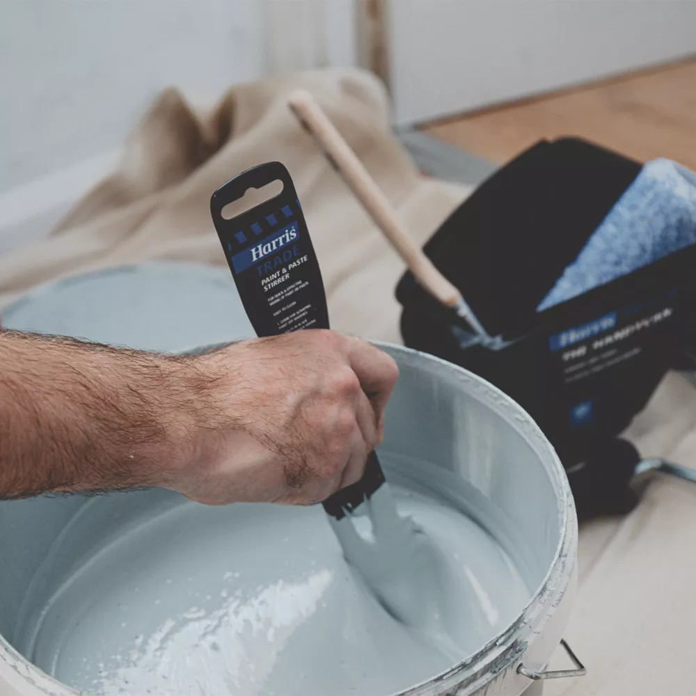 Easy to clean plastic stirrer with holes in blade for quick and effective mixing of paint or wallpaper paste. Also acts as a comb for scraping excess paint from brushes and a scraper for removing excess paint from roller sleeves. Handy can hook to rest the stirrer inside the paint tin.