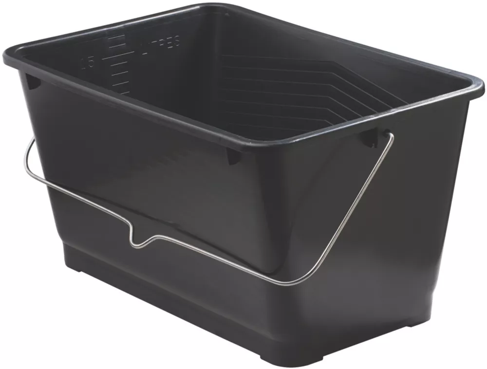 Deep, sturdy scuttle with internal measuring scale and strong carry handle. Ribbed interior for easier paint roll-off and rounded bottom for maximising paint pick-up, meaning less paint wasted. Ideal for use with 9″ and 12″ rollers.