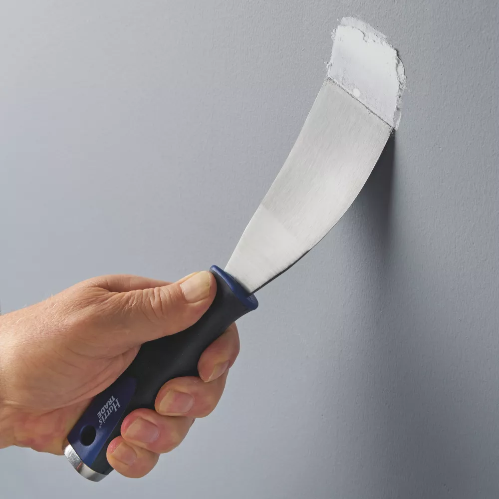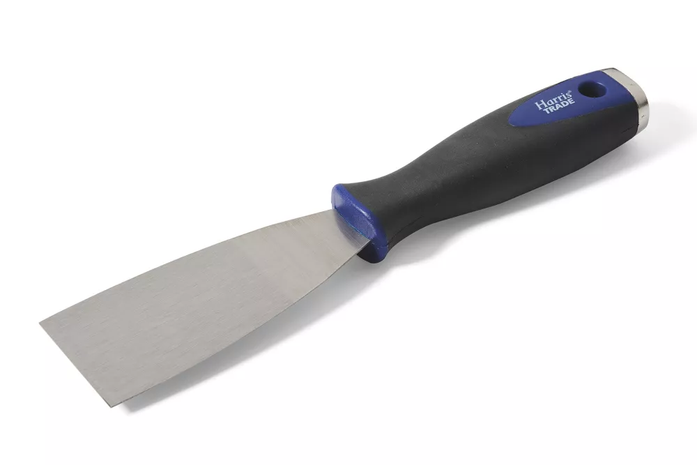 Deep-set stainless steel blade with soft-grip handle for comfortable use. Hammer end for setting nails.