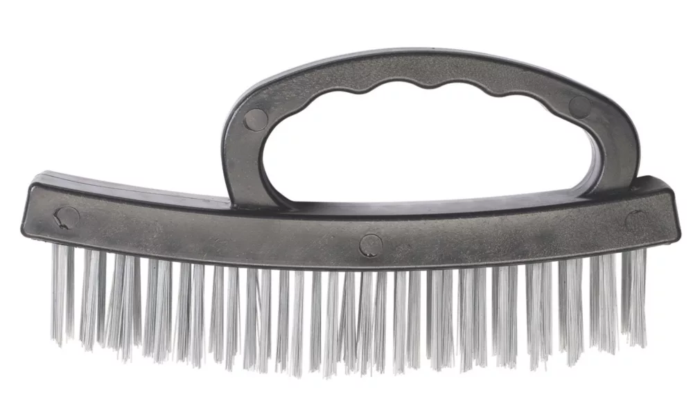 Durable, 4-row brush for removing paint and rust prior to redecoration. Tough grip handle for protecting knuckles.