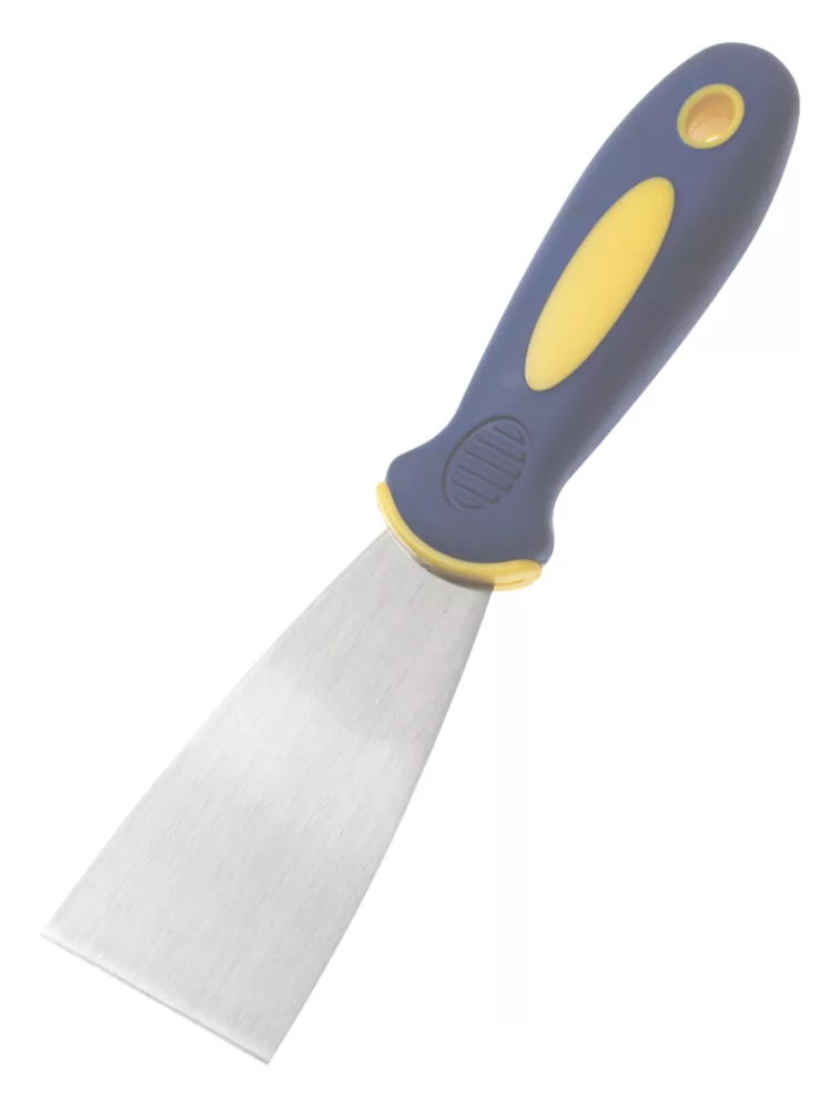 Soft-grip handle for comfort and control. Hardened and tempered steel blades ideal for filling uneven and cracked areas.