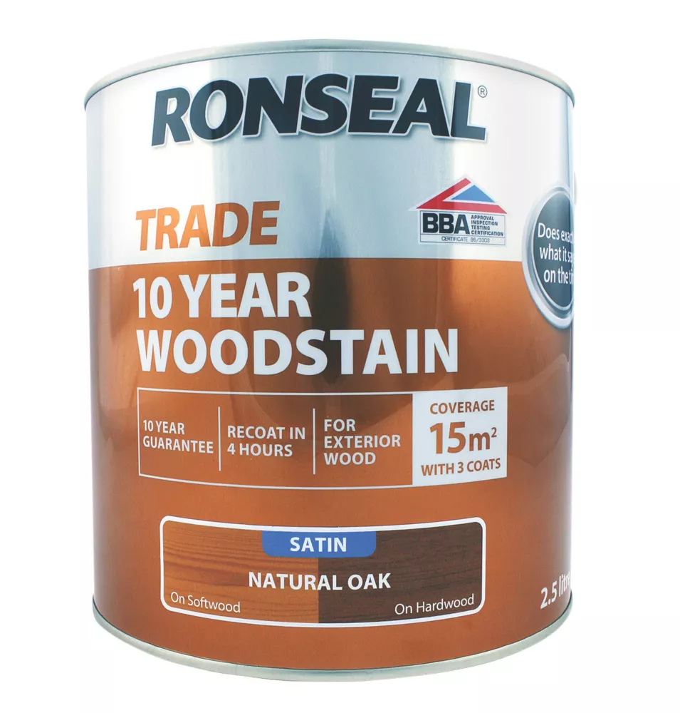 Water-based woodstain gives colour and protection to wood and prevents cracking, peeling and blistering. Dries in 1 hour. Recoat in 4 hours. Covers approx. 6m²/Ltr.