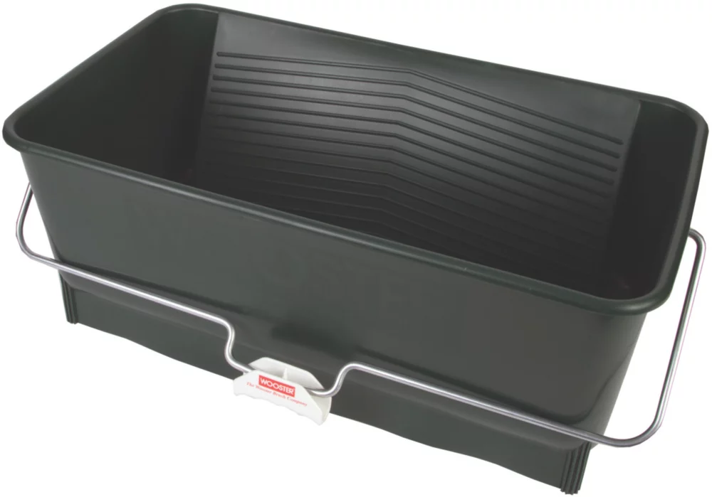 Professional paint bucket for use with rollers up to 18″ long. Durable polypropylene construction with additive to reduce paint build up and ease cleaning. Extra strong 8mm diameter galvanised rust proof handle with comfort-grip. Built-in 19″ wide sloping roller grid to knock off excess paint from roller before application. No tip design with sturdy built-in feet. Lid available for overnight storage (Code 8108X).